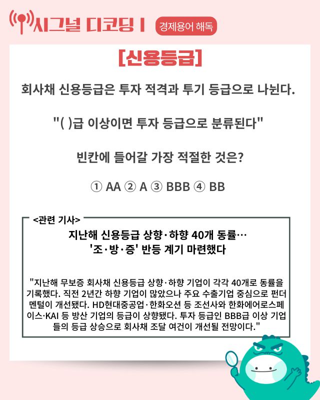 ▶ 기사 바로가기: 지난해 신용등급 상향·하향 40개 동률···‘조·방·증’ 반등 계기 마련했다