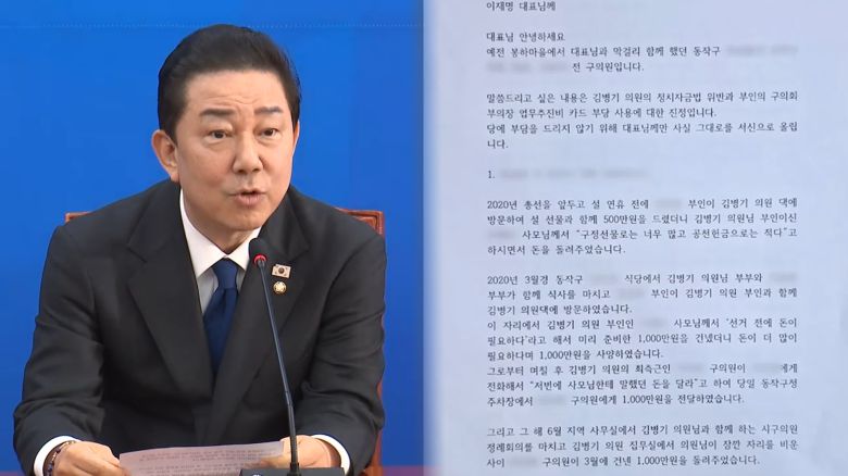 연합뉴스TV가 입수한 탄원서에 따르면 김 의원은 지난 2020년 총선을 앞두고 자신의 지역구 구의원 A 씨로부터 2천만 원, B 씨로부터 1천만 원을 각각 받았고 이후 돌려줬다는 내용이 기재됐습니다.