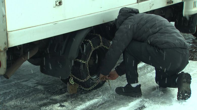 도로는 밤새 내린 눈이 얼어붙은 상황.