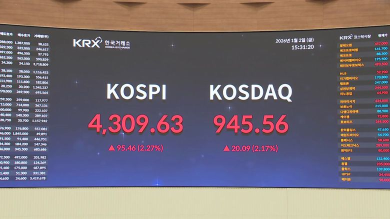 새해 첫 거래일을 맞은 코스피가 그동안 한 번도 밟지 못한 4,300선을 돌파하며 역대 최고 기록을 갈아치웠습니다.