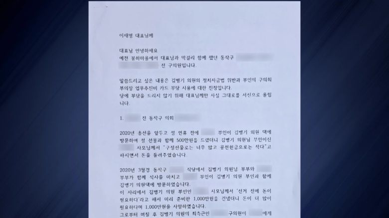 네, 민주당 김병기 의원은 지난 2020년 총선 전 전직 동작구 의원 2명에게서 각각 금품 2천만 원과 천만 원을 전달받았다가 돌려줬다는 의혹이 불거진 상황입니다.