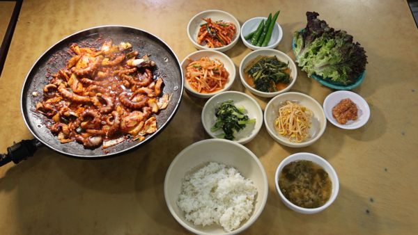 각박한 도시에서 힘들 때면 그리운 이름, 엄마. 그럴 때면 장안평 중고차 시장의 사람들은 지하상가에 내려간다. 오래된 복도를 지나 식당 문을 열면 6명의 엄마들이 반겨주기 때문이다. 평균 연령 80대의 어머님들이 잔칫날처럼 모여 쪽파 썰고 나물 다듬고 하느라 분주한데. 마지막으로 팔순의 주인장 정주선 씨가 대야에 합쳐 조물조물하면 반찬들이 금세 뚝딱뚝딱 만들어진다. 양념은 소금, 참기름, 마늘, 참깨 한 줌이면 된다. 여기에 아침에 장 봐온 생물 낙지를 볶아 상에 올리면 식사 준비 끝이다. 별거 안 했는데도 맛깔나기로 유명한 주선 씨의 낙지볶음 한 상.