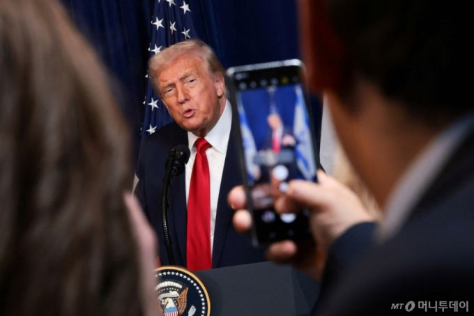 도널드 트럼프 미국 대통령이 지난달 29일(현지시간) 플로리다주 마러라고 리조트에서 베냐민 네타냐후 이스라엘 총리와 회담한 후 공동 기자회견을 하고 있다. /사진=뉴스1 |