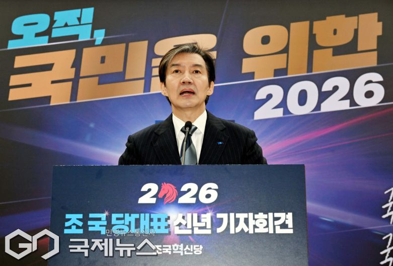 (서울=국제뉴스) 조국 조국혁신당 대표가 4일 서울 여의도 국회 의원회관에서 신년 기자회견을 하고 있다./사진=이용우 기자