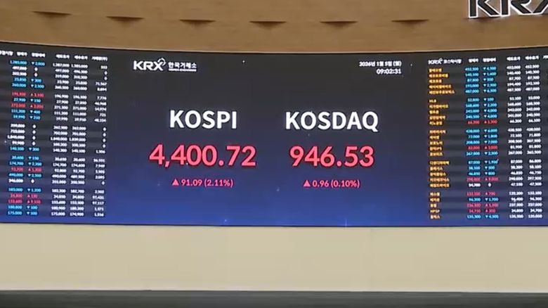 외국인의 매수세가 장 초반부터 유입되면서 상승 폭이 빠르게 커졌고, 장중 사상 처음으로 4,400선을 넘어섰습니다.
