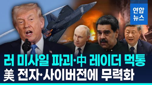 (서울=연합뉴스) 미국 도널드 트럼프 행정부가 베네수엘라를 공습해 니콜라스 마두로 대통령을 압송한 가운데 베네수엘라에 배치됐던 러시아와 중국의 방공 시스템이 제대로 작동하지 않았다는 분석이 나오고 있습니다.