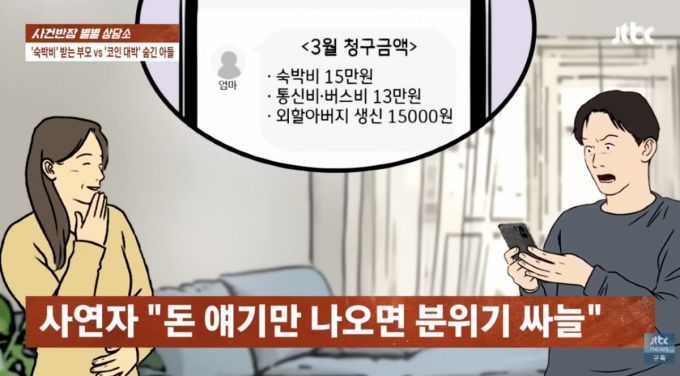 어머니는 "너희들 대학 가면 알바를 해서라도 꼭 숙박비 내야 한다"는 말을 입에 달고 살았다. B씨가 대학에 입학하자 어머니는 숙박비, 통신비, 버스비 등을 청구했다.