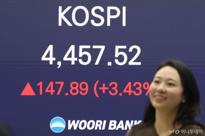 5일 코스피지수는 전 거래일 대비 147.89포인트(3.43%) 오른 4457.52에 장을 마감했다. 상승 폭 기준으로는 지난해 4월 10일(151.36포인트) 이후 역대 두 번째다.