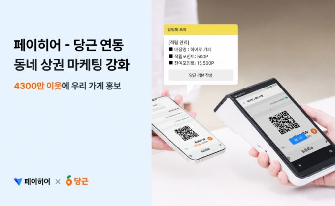 박준기 페이히어 대표는 "동네 상권에서 주민과 관계를 구축하고 단골을 확보하는 것은 소상공인 매출 증대를 위한 마케팅의 핵심"이라며 "당근과 협업해 페이히어 가맹점 사장님이 보다 실질적인 마케팅 효과를 체감할 수 있도록 기능을 강화해 나가겠다"고 말했다.