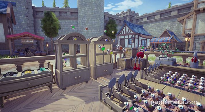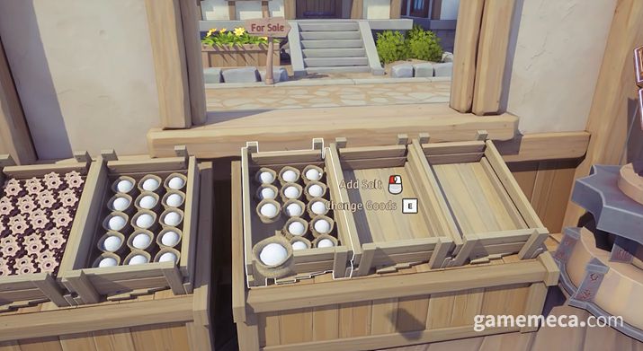 여기에 더해 여러 편의성을 강화하는 마법적인 설비들도 더해집니다. ‘삽 캐터펄트’는 설치시 생산한 물건을 정한 위치로 날려주는 기능을 지녔습니다. 이를 활용하면 상품을 매대에 하나씩 직접 들고 옮길 필요 없이, 자동으로 물건이 날아오며 채워지죠. 업그레이드와 레시피 해금을 진행하면 ‘포탈’과 같은 고급 마법 기술도 습득할 수 있습니다. 적절한 위치에 배치하면, 동선 낭비를 크게 줄일 수 있죠.