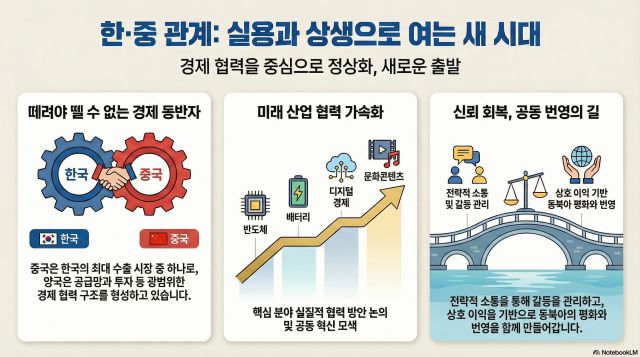 무엇보다 한·중 관계는 한국 경제의 중요한 축이다. 미래 산업과 기술 협력, 공급망 안정, 문화 콘텐츠 교류는 양국이 함께 만들어가는 글로벌 가치 사슬의 일부다. 이번 정상회담과 협력 논의가 상징적 복원에 머물지 않고, 기업과 시민, 청년들에게 실질적인 기회로 이어지기를 기대한다.