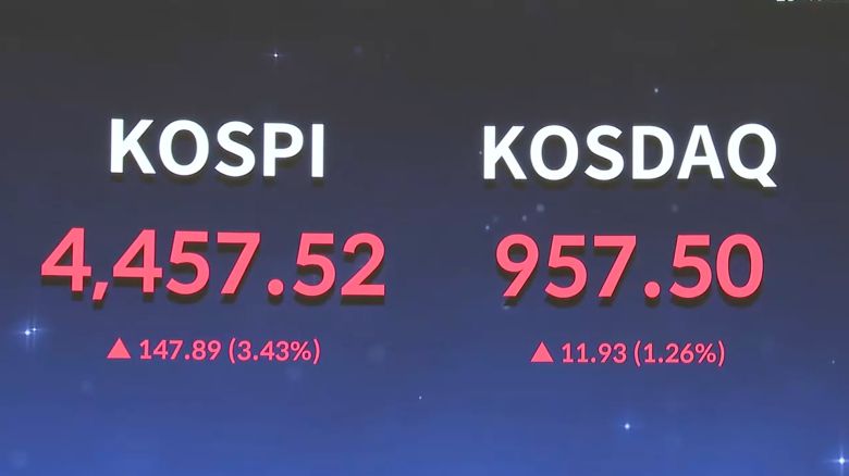 지수는 하루 만에 3% 넘게 오르며 4,450선에 올라섰고, 4,500선까지도 이제 불과 40여 포인트만 남겨두고 있습니다.