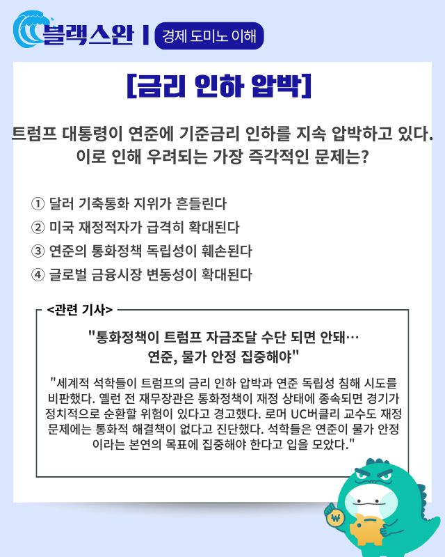 ▶ 기사 바로가기: “통화정책이 트럼프 자금조달 수단 되면 안돼···연준, 물가 안정 집중해야”