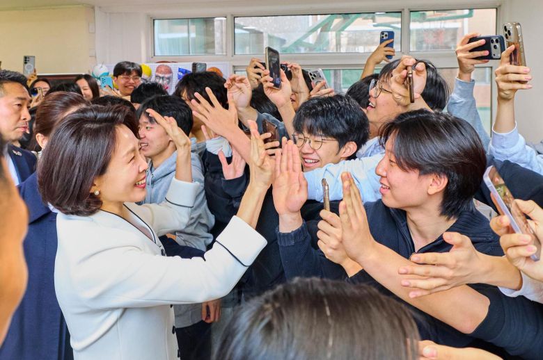 김 여사가 이날 오전 북경한국국제학교에 도착하자 학생들은 큰 박수와 환호로 맞았다. 북경한국국제학교는 1998년 설립 이후 30여 년 한중 양국의 미래 협력을 이끌 글로벌 인재를 양성하기 위해 힘써왔다. 학생들은 김 여사에게 “환영합니다” “저희 내일 졸업해요” “사진 찍어주세요” 등 반가움을 표했다. 김 여사는 이에 화답하듯 학생들과 함께 사진을 촬영했다.