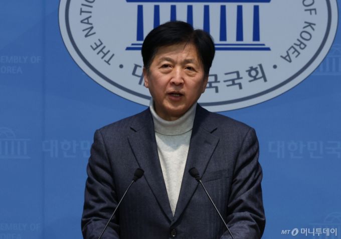 [서울=뉴시스] 김금보 기자 = 오기형 더불어민주당 의원이 6일 오후 서울 여의도 국회 소통관에서 개인정보 유출 사태를 계기로 하는 '집단소송법안' 대표발의 기자회견을 하고 있다. 2026.01.06. kgb@newsis.com /사진=김금보 |