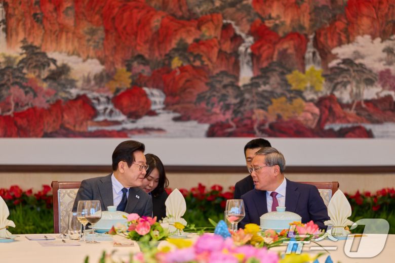 (베이징=뉴스1) 한재준 기자 정은지 특파원 = 이재명 대통령이 6일 중국 공산당 서열 2위 리창 국무원 총리와 오찬을 갖고 한중 간 정치적 신뢰를 공고히 하자는 데 공감대를 형성했다. 이날 오찬에서 리 총리는 "제로섬 사고를 버리고 다자주의를 함께 고수할 것"을 촉구했다.