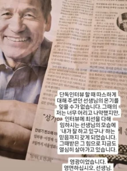 방송인 박슬기 역시 안성기와의 단독 인터뷰를 떠올렸다. 그는 “따뜻하게 대해주시던 선생님의 온기를 잊을 수 없다”며