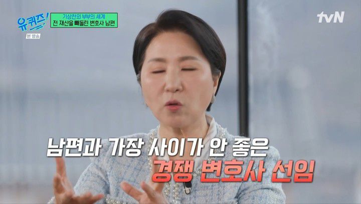 그는 "남편이 변호사였다. 아내는 변호사가 아니라 일반 주부였다. 그런데 남편인 변호사가 인근 병원 간호사와 눈이 맞았다. 변호사니까 법을 얼마나 잘 알겠냐. 남편은 '아내에게 아무것도 주지 않겠다' 마음을 먹었다"고 말했다.
