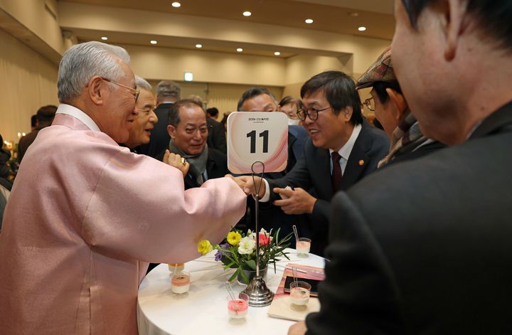 [서울=뉴시스] 최휘영 문화체육관광부 장관이 7일 서울 서초구 예술의전당 음악당 콘서트홀에서 열린 2026 신년음악회를 마치고 출연진을 격려하고 있다. (사진=문화체육관광부 제공). 2026.01.07. photo@newsis.com *재판매 및 DB 금지