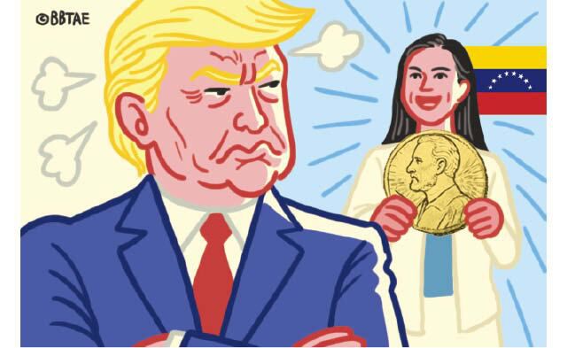 트럼프는 왜 야권 지도자 마차도를 거부하는 걸까. 워싱턴포스트는 정계 관계자들을 인용, “트럼프가 그토록 갈망했던(desperately covet) 노벨평화상을 마차도가 앗아갔다”며 “‘용서할 수 없는 궁극적인 죄(unforgivable ultimate sin)’로 여기고 있는 앙금(emotional baggage) 때문”이라고 전한다. “마차도가 트럼프의 업적이 더 크다며 노벨상을 양보했다면 그녀는 이미 베네수엘라 대통령이 돼 있었을 것”이라는 비아냥도 나온다.