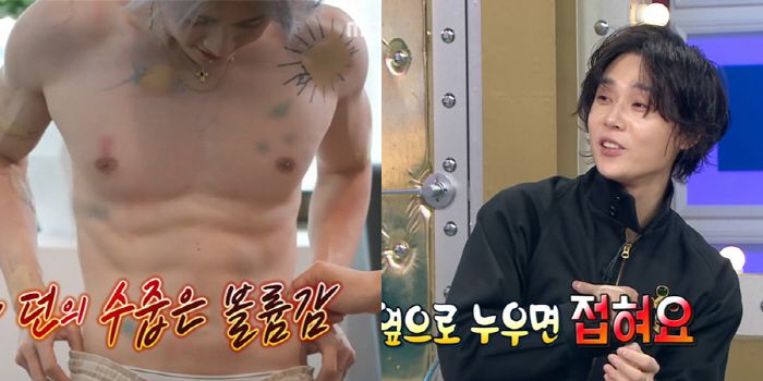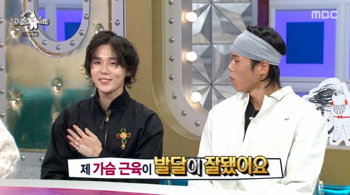 또한 던은 "가슴 근육이 발달이 잘 됐다. 여사친들도 질투하고 견제한다. 옆으로 누우면 접힌다"고 자랑해 눈길을 끌었다. 이를 믿지 못하던 김동현은 던의 가슴을 만져본 뒤 화들짝 놀랐고, 김구라는 "상탈한 영상을 본 것 같다. 꽤 좋더라"고 했다. 이후 던의 상탈 모습이 공개되며 숨겨왔던 볼륨감이 놀라움을 자아냈다.