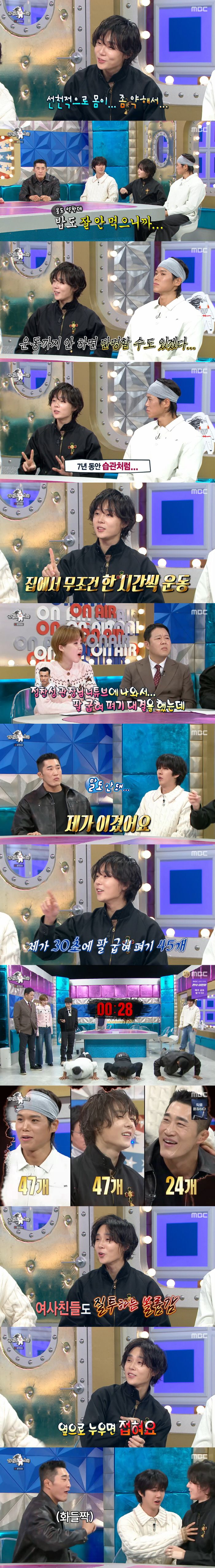 7일 방송된 MBC '라디오스타'는 '새해 복근 많이 받으세요!' 특집으로 김동현, 광희, 던, 아모띠가 출연했다.