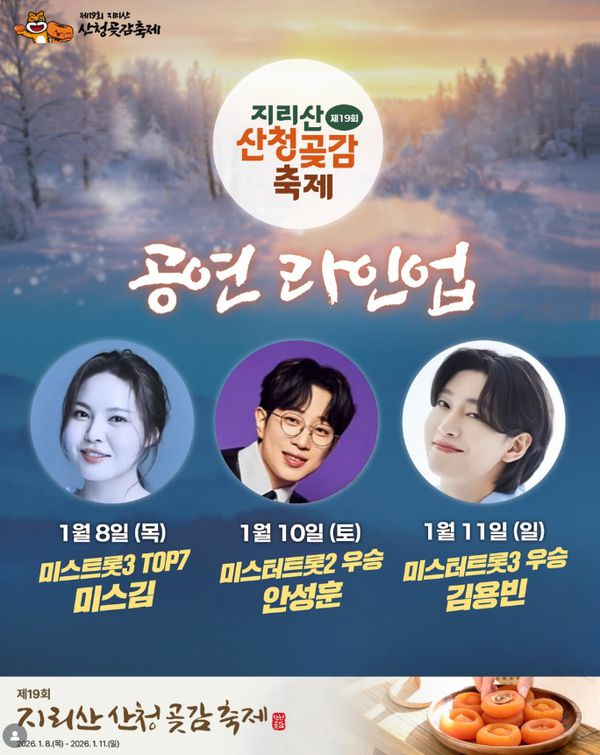 지리산산청곶감축제가 8일부터 11일까지 4일간 시천면 산청곶감유통센터 일원에서 개최된다.