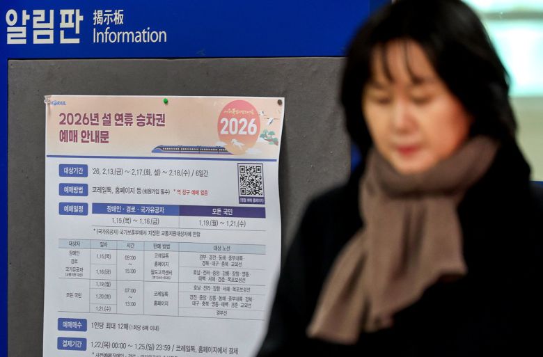 7일 대구 동구 동대구역 대합실 알림판에 2026년 설 연휴 승차권 예매 안내문이 붙어 있다. 한국철도공사(코레일)는 15일부터 설 연휴 승차권 예매를 시작한다고 7일 밝혔다. 대구=뉴시스 |