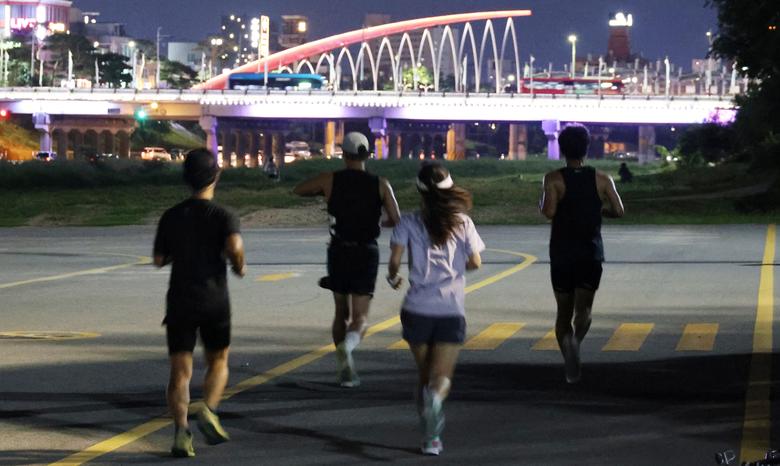 충북 청주시 서원구 사직동 무심천 체육공원에서 시민들이 조깅하고 있다. /연합뉴스 |
