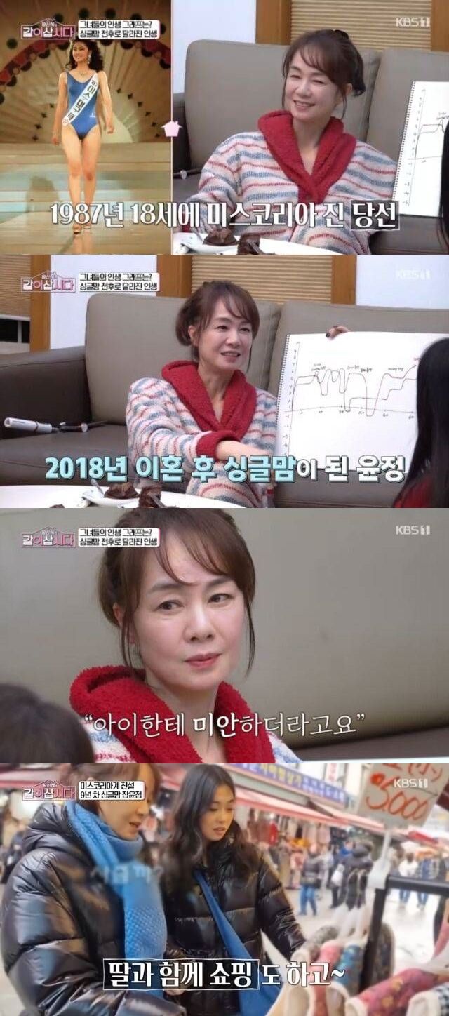 장윤정은 7일 방송한 KBS 1TV '황신혜의 같이 삽시다'에서 인생 그래프를 그렸다. 커리어 정점을 찍었을 때 결혼했다며 "지금의 애들 아빠를 만났고, 집에만 계속 있었다. 그대로 쭉 가다가 아이들 아빠랑 헤어졌다"고 회상했다.