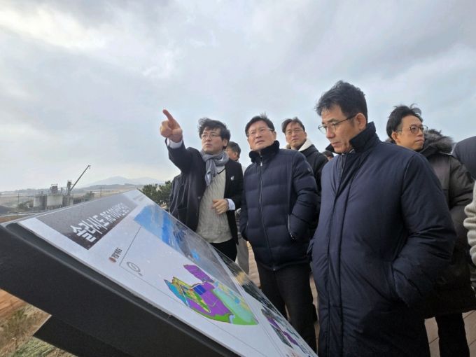 삼성SDS 컨소시엄 설립위원들이 7일 전남 해남군에 위치한 국가AI컴퓨팅센터 현장을 방문, 예정부지를 점검하고 있다.    /사진 제공=삼성SDS 컨소시엄