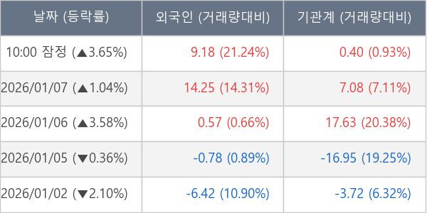 [장중수급포착] 한화엔진, 외국인/기관 동시 순매수… 주가 +3.65%