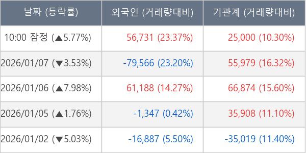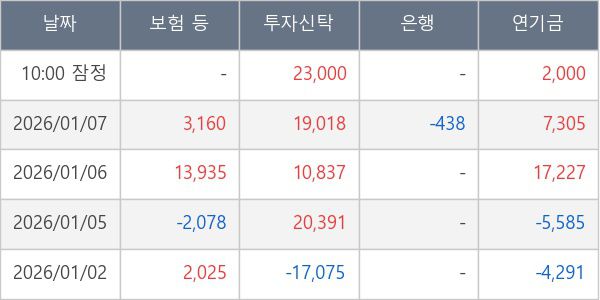 [표] 주요 기관별 순매매량 (단위 주)