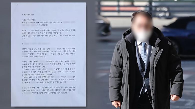 A씨는 지난 2020년 총선 당시 김 의원 아내의 요구로 천만원을 전달했다가 돌려받았다는 내용의 탄원서를 작성해 2023년 말 당시 민주당 소속이던 이수진 전 의원에게 제출한 인물입니다.