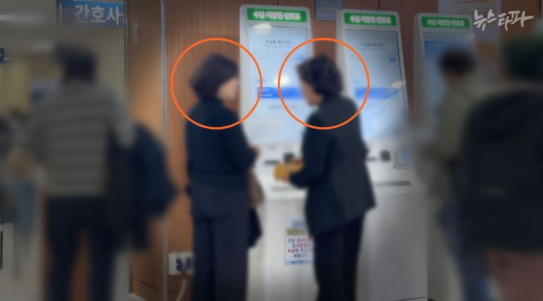 3시쯤, 진료가 끝난 이 씨가 병원비 수납 키오스크로 향했다. 그 뒤를 8급 비서관 김 씨가 따라 붙어 병원비 수납을 도왔고, 4급 보좌관 김 씨는 그 주변을 배회했다.