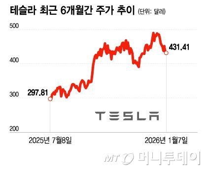 테슬라 최근 6개월간 주가 추이/그래픽=이지혜