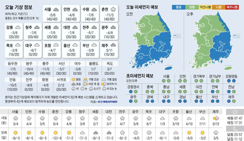 금 - 계속되는 추위… 수도권·강원엔 눈비