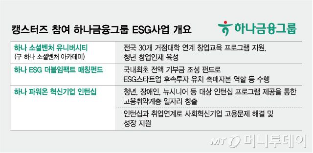 캥스터즈 참여 하나금융그룹 ESG사업 개요/그래픽=김현정