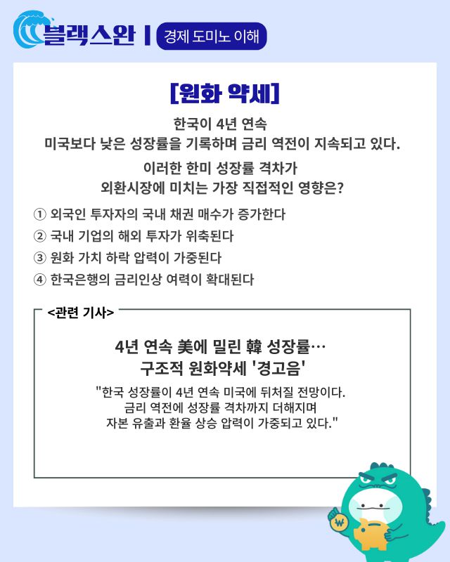 ▶기사 바로가기: 韓 성장률 4년 연속 美에 밀리나···구조적 원화약세 경고음 커져