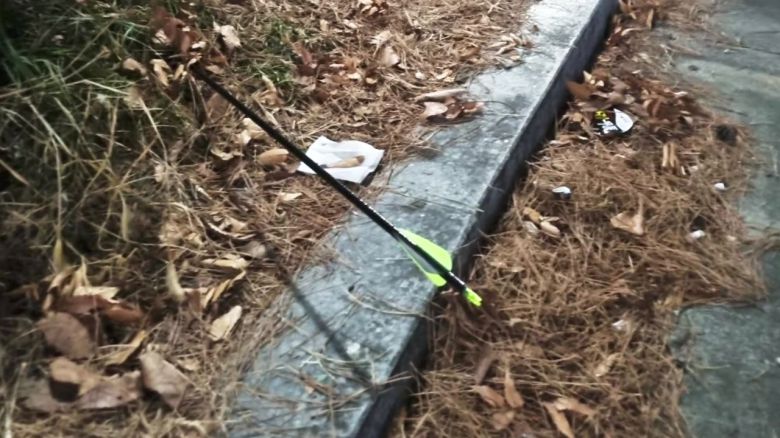 이 화살은 80㎝ 길이로 무쇠로 된 화살촉이 달린 것으로 알려졌는데, 경찰은 살상력이 있는 양궁용 화살로 보고 있습니다.