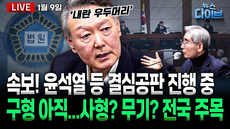 출연: 노영희 변호사, 장윤미 변호사, 김완 한겨레21 취재2팀 팀장, 진행: 고현준. ‘내란 우두머리’ 윤석열, 결심공판...사형? 무기징역? / 쿠팡, 김앤장·전관 통해 노동부 내부 정보 ‘실시간 입수’ / 이혜훈, 장남 ‘위장미혼’으로 강남 아파트 청약 당첨됐나 / ‘내란 개입’ 방첩사, 49년 만에 해체. 오늘 (1월 9일) 뉴스 다이브 많은 시청바랍니다.