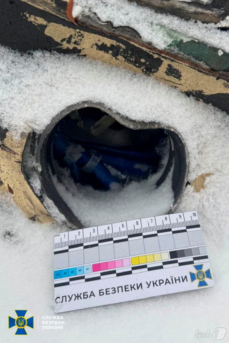 9일(현지시간) 우크라이나 서부 르비우에 떨어진 러시아의 극초음속 오레슈니크 미사일 파편. 사진은 우크라이나 보안국 제공. 2026.01.09 ⓒ 로이터=뉴스1 ⓒ News1 김지완 기자 |