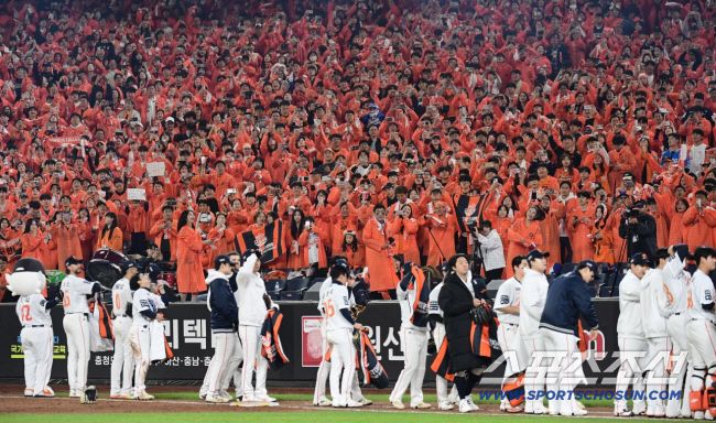 30일 대전 한화생명볼파크에서 열린 LG와 한화의 한국시리즈 4차전. 한화 팬들이 열띤 응원전을 펼치고 있다. 대전=정재근 기자 cjg@sportschosun.com/2025.10.30/
