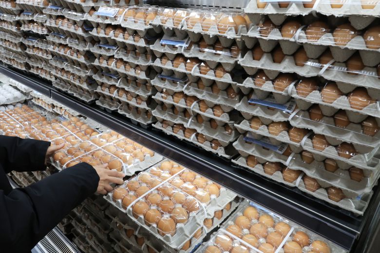 7일 서울시내 한 마트에서 시민이 계란을 고르고 있다. [연합]