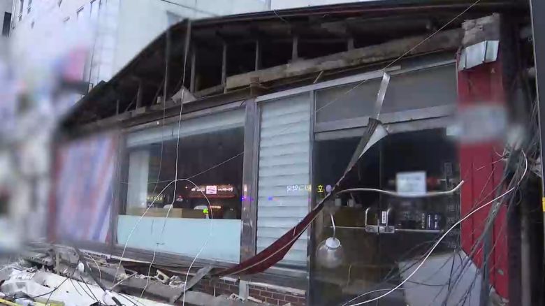 가게 앞 인도를 걷던 20대 남성이 떨어진 간판에 깔려 숨졌습니다.