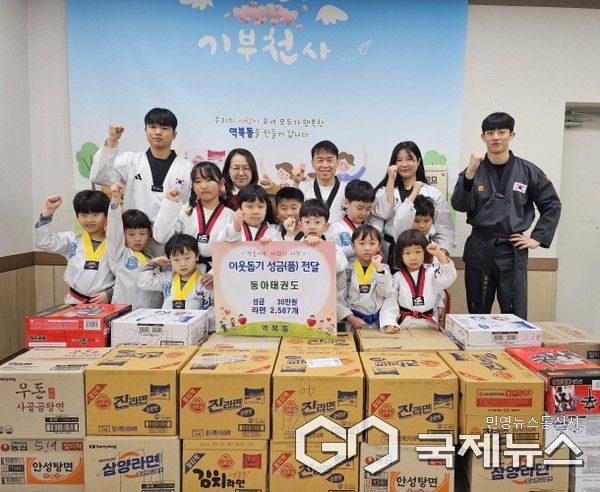 처인구 역북동 동아태권도는 지난 9일 성금 30만 원과 라면 2587개(209만 원 상당)을 역북동에 기탁했다. 성금과 라면은 원생 190명이 자발적으로 참여해 마련했다. 동아태권도는 2018년부터 매년 이웃돕기 활동을 이어오고 있다. 동아태권도 관계자는 "아이들이 스스로 참여해 나눔과 배려의 가치를 배운게 된 것이 보람"이라며 "앞으로도 지역과 함께 성장할 수 있는 다양한 활동을 통해 아이들이 건강하게 자랄 수 있도록 노력하겠다"고 말했다.