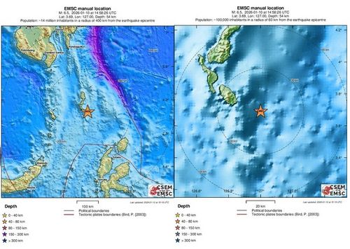 11일(현지시간) 유럽지중해지진센터(EMSC) 등에 따르면 전날 오후 9시 58분께 술라웨시섬 북쪽 탈라우드 제도 해역에서 규모 6.5의 지진이 발생했다.