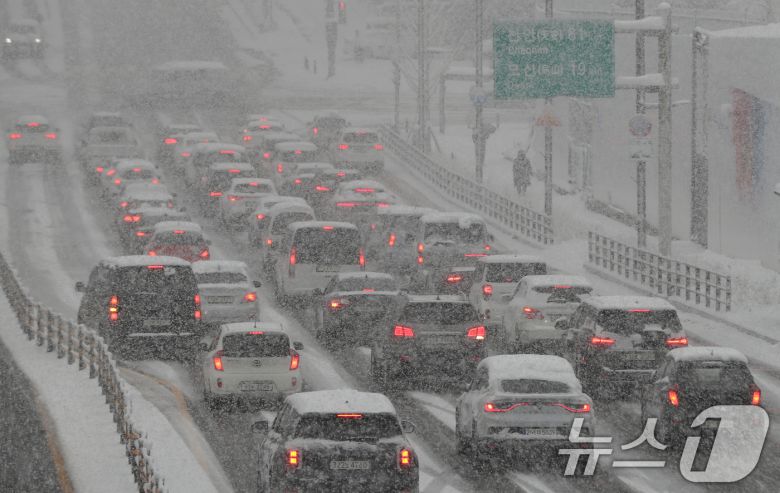 경기 수원시 팔달구 경수대로 일대에서 차량이 서행하고 있다. 뉴스1 ⓒ News1 김영운 기자 |