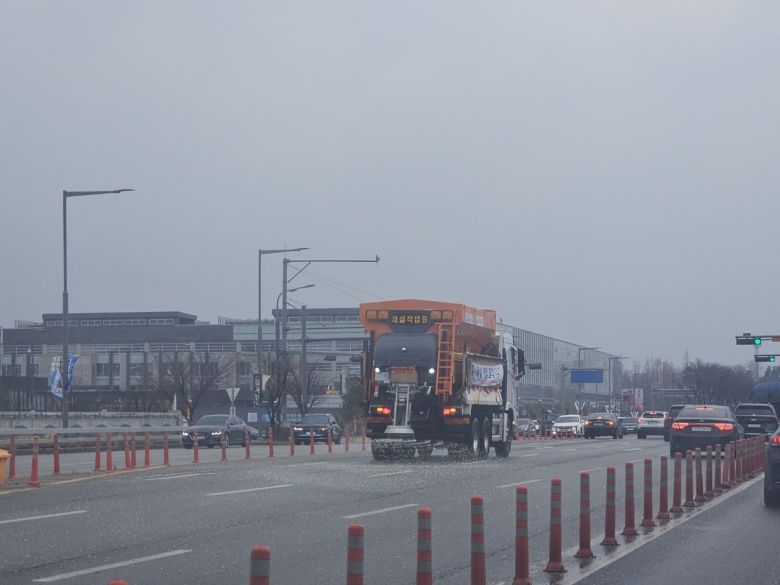 [헤럴드경제(수원)=박정규 기자]수원시(시장 이재준)가 10일 선제적으로 제설제를 살포해 블랙아이스(도로결빙)에 대비했다.