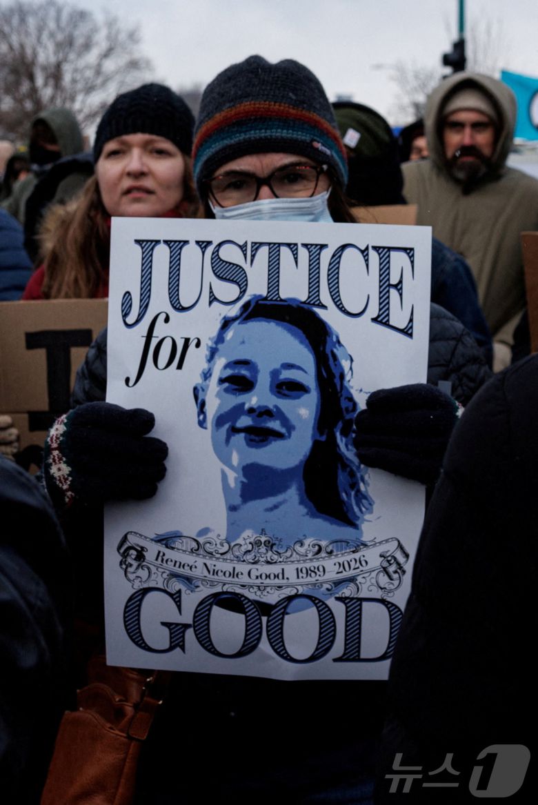 10일(현지시간) 미국 미네소타주 미니애폴리스에서 르네 니콜 굿(37)이라는 이름의 여성이 이민세관단속국(ICE) 요원의 총에 맞아 숨진 사건에 항의하는 시위가 열리고 있다. 2026.01.10 ⓒ 로이터=뉴스1 ⓒ News1 김지완 기자 |